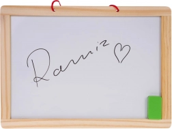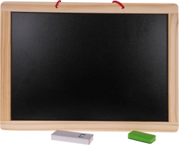 Tableau double face en bois pour enfants dès 3 ans, avec une face noire pour la craie et une face blanche pour feutres effaçables à sec. Le coffret comprend des craies, un feutre effaçable à sec, une éponge et des magnets avec lettres, chiffres et formes. Parfait pour les premiers essais d’écriture, le calcul et le dessin créatif. Tableau double face, accessoires complets, fabrication en bois robuste et apprentissage ludique réunis en un seul produit.