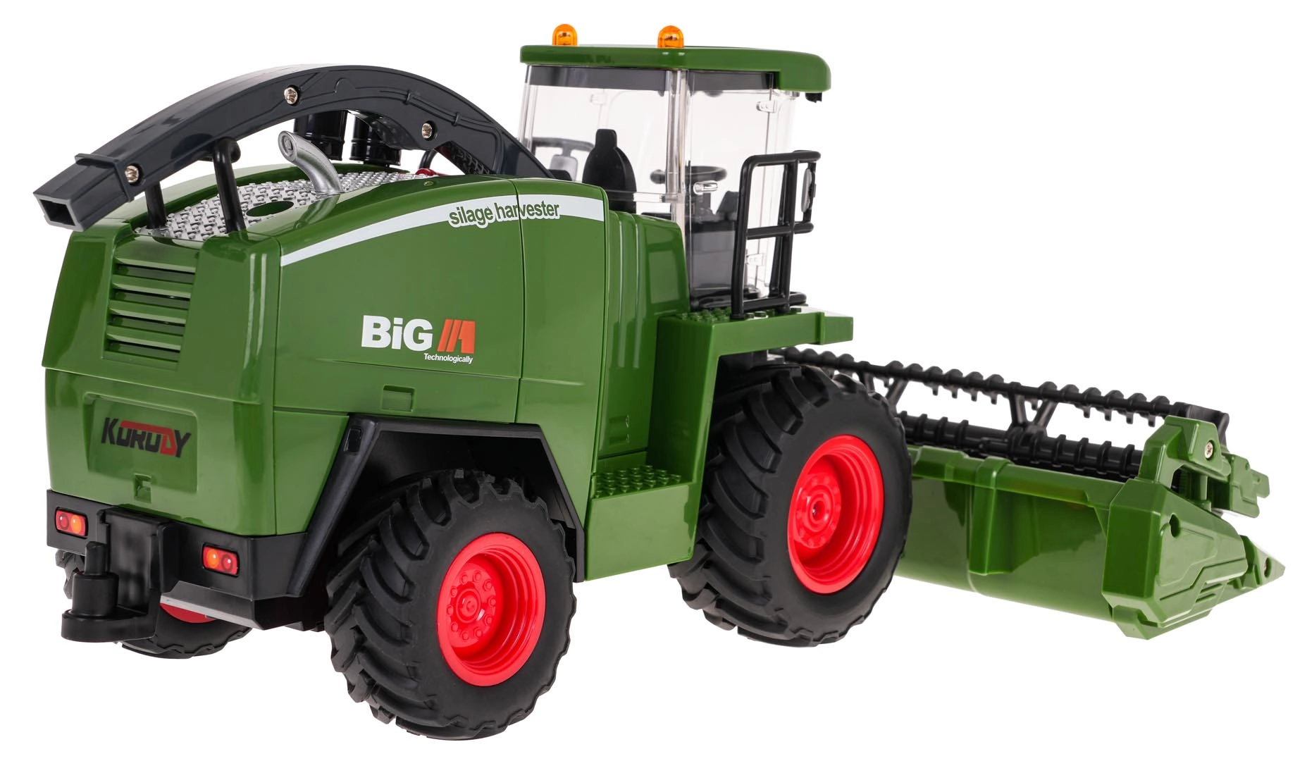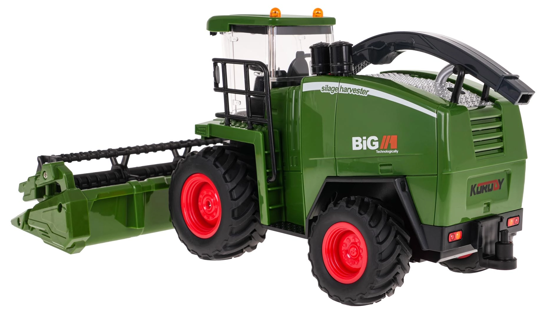 Découvrez une moissonneuse-batteuse RC finement détaillée, qui reproduit fidèlement une machine agricole réelle. Les deux barres de coupe interchangeables pour la récolte des céréales et du maïs se montent facilement, les disques rotatifs tournent pendant la conduite et le tuyau d’éjection pivotant à 360° ajoute de l’authenticité au jeu. Les LED de cabine et les sons du moteur et de marche arrière peuvent être désactivés à tout moment depuis la télécommande.