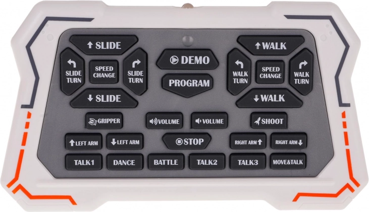 Le robot se contrôle facilement à l’aide de la télécommande, qui permet de régler diverses fonctions de glissement, de marche et de démonstration. La programmation de ses propres séquences de mouvements garantit une expérience de jeu unique.