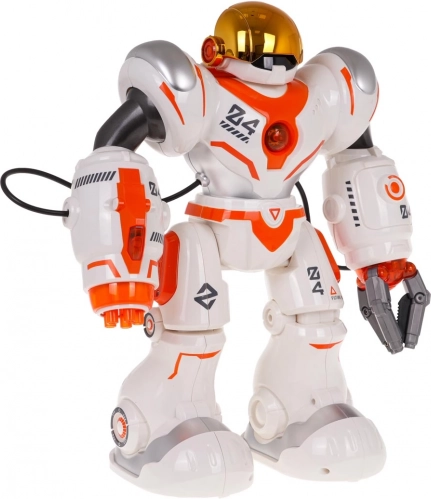 Ce robot innovant est conçu pour séduire par ses fonctions variées. Télécommandé via une commande RC, le robot danse, exécute des séquences de combat, parle en langage robotique et dispose d’une séquence de mouvements programmable. Grâce à l’éclairage LED des mains et aux différents effets sonores en mouvement, il est idéal pour le jeu créatif.