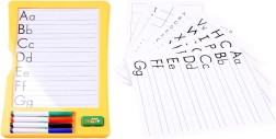 Tablette transparente, cartes avec alphabet, feutres spéciaux