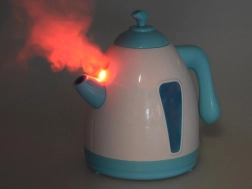 La bouilloire est équipée d'un bouton qui déclenche la simulation d'ébullition de l'eau avec un son réaliste et une indication LED rouge.