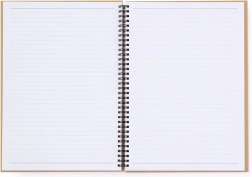 Bloc à anneaux A4 élégant au design kraft naturel avec couvertures laminées rigides, idéal pour l’école, le bureau et les déplacements. Il offre 60 feuilles lignées de 70 g/m², une double spirale pour un feuilletage fluide et une perforation pour un arrachage facile. Les couvertures laminées résistantes protègent vos notes où que vous soyez.