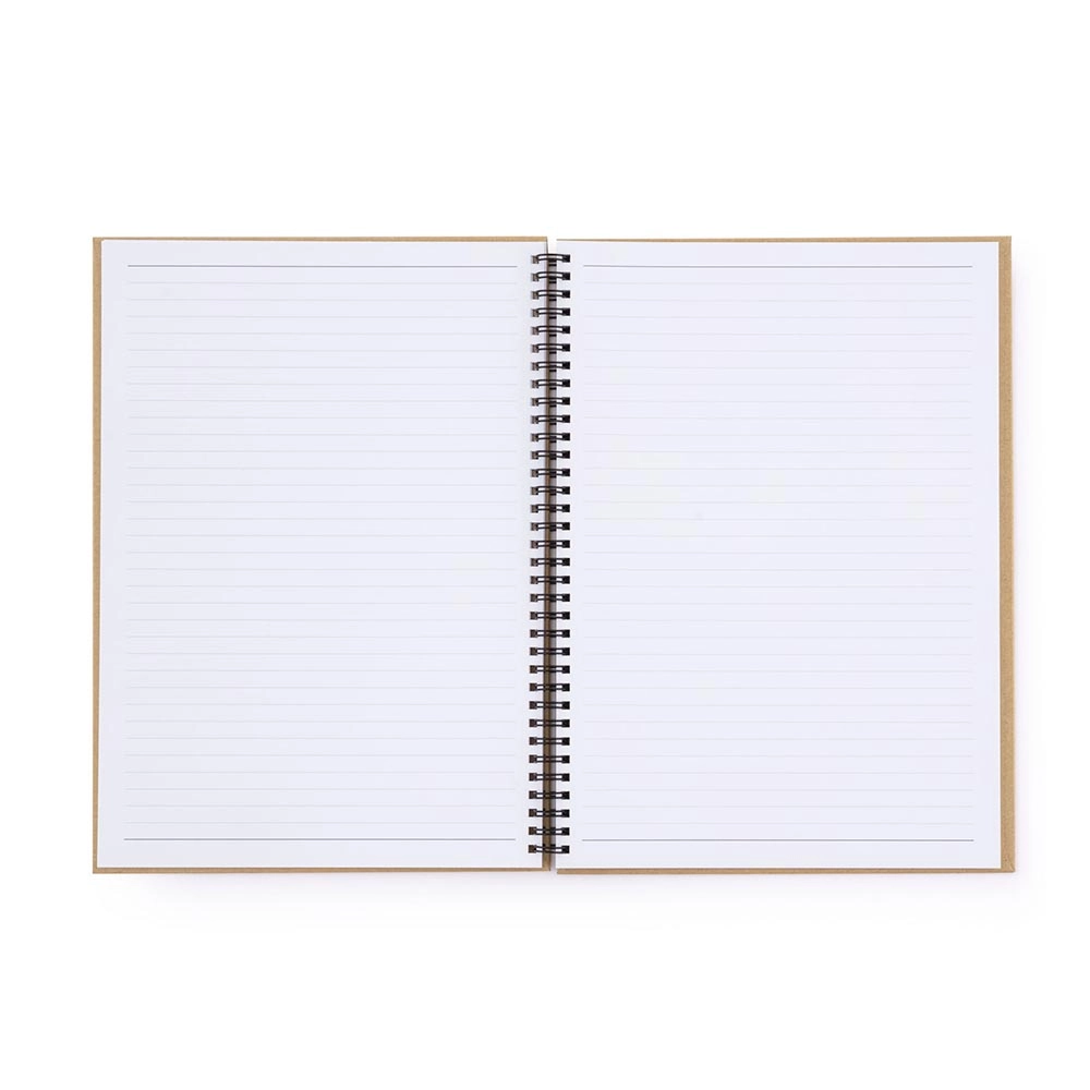 Ce bloc élégant au style kraft naturel allie fonctionnalité et design. Grâce au format A4, vous disposez de suffisamment d’espace pour les notes, les croquis ou la planification, tandis que la double spirale métallique assure une rotation des pages fluide sans accrochage.