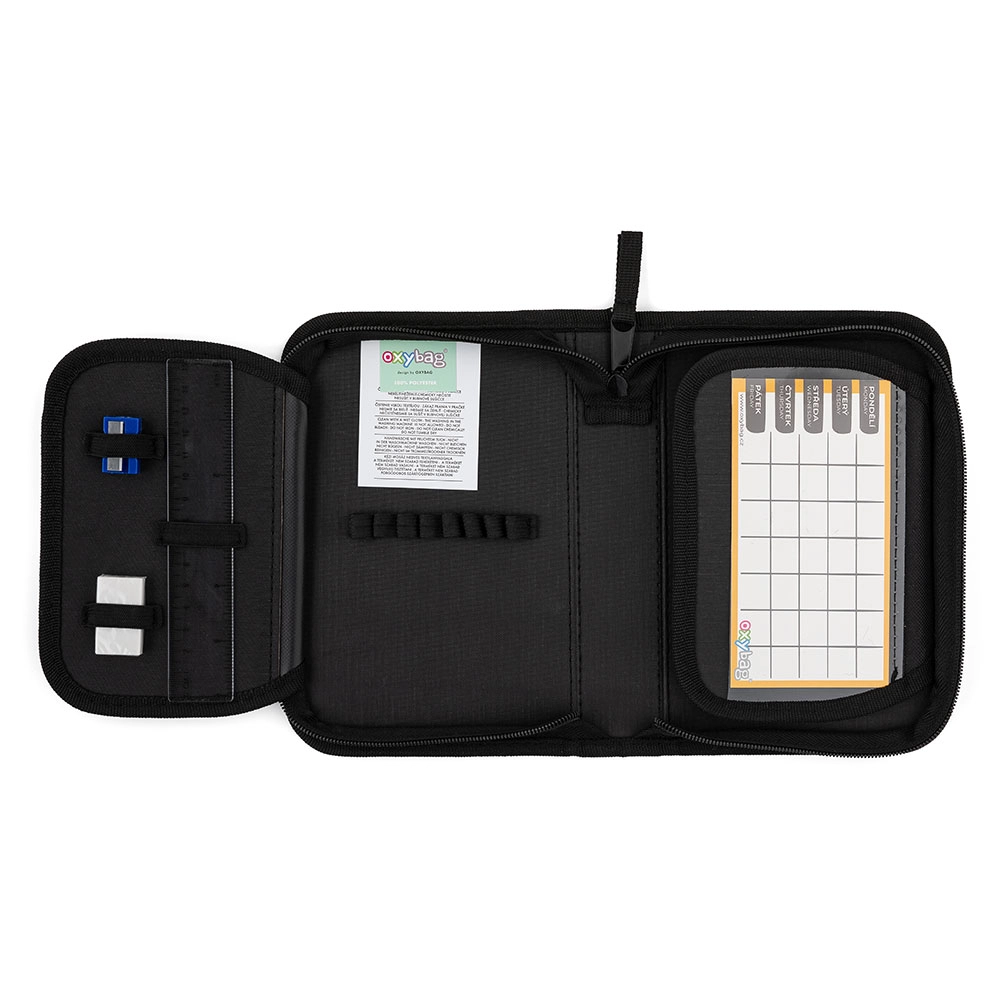 Sur les rabats intérieurs, vous trouverez des films transparents pour insérer facilement l’emploi du temps ou des notes. La trousse est vide, vous pouvez donc l’équiper exactement selon vos besoins. Ses dimensions compactes et son faible poids conviennent parfaitement au cartable comme au sac à dos.