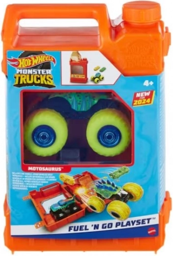 Plongez dans des aventures épiques avec le set de jeu Hot Wheels Monster Trucks Bidon Fuel 'N Go ! Ce set finement conçu en forme de bidon d’essence s’ouvre en une mini arène pour cascades et un atelier de réparation. Avec le véhicule Motosaurus à l’échelle 1:64 inclus, vous pouvez facilement monter sur la rampe et renverser deux voitures cabossées. D’autres véhicules et camions augmentent le niveau de destruction ! (Contient deux voitures cabossées. Les autres véhicules montrés sont vendus séparément.)