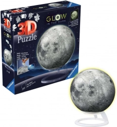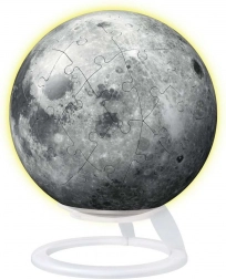 Le Ravensburger Puzzle 3D lumineux Lune est une parfaite combinaison de divertissement et de décoration. Ce puzzle comprend 73 pièces qui s’assemblent facilement et précisément grâce à la technologie spéciale EasyClick. Une fois montées, elles forment une sphère solide et stable.