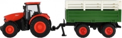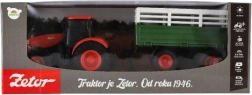 Le tracteur rouge au design ZETOR avec remorque verte se détache facilement pour diverses tâches à la ferme et un jeu encore plus amusant.