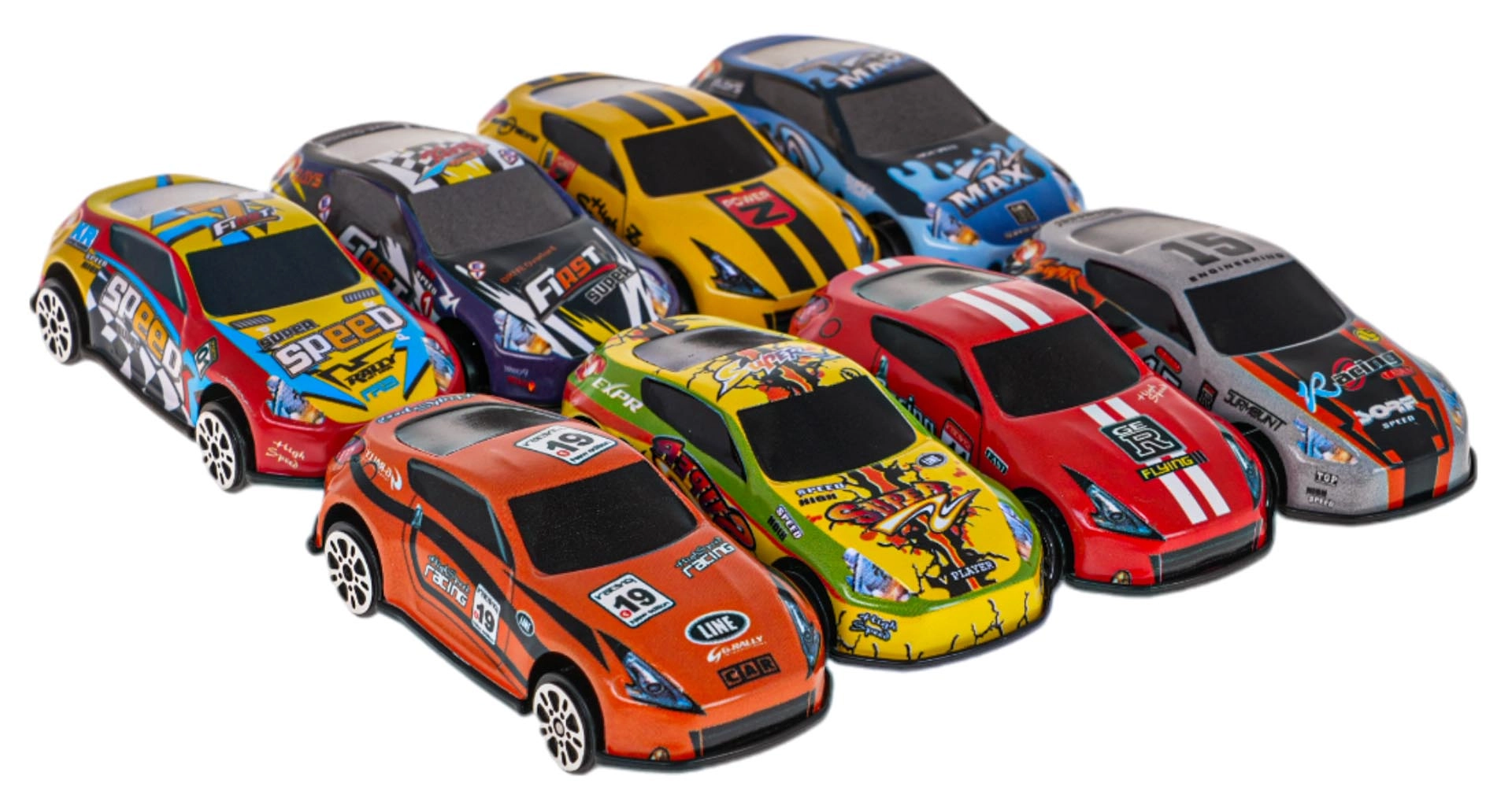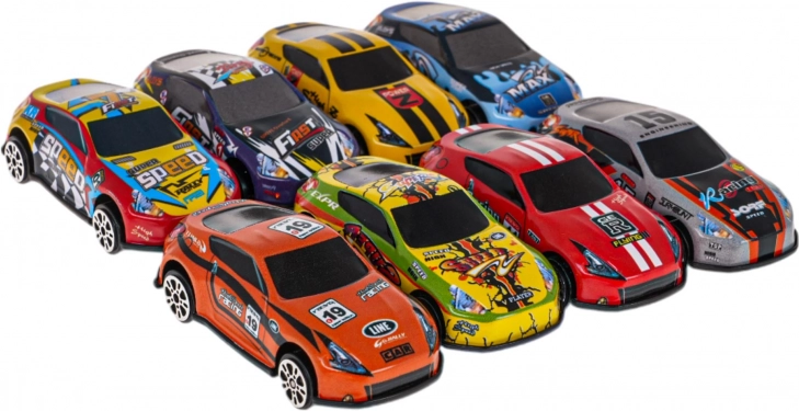 Prêt à jouer immédiatement – des voitures de course multicolores avec carrosserie métallique résistante élargissent les possibilités de jeu.