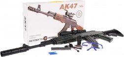 Comme munitions, utilisez des billes en hydrogel (diamètre recommandé env. 7–8 mm) que vous laissez simplement gonfler dans l’eau pendant 4–6 heures avant utilisation. Une fois hydratées, égouttez l’eau et jouez. Les billes éclatent en toute sécurité à l’impact, ce qui les rend adaptées à un usage récréatif. L’emballage comprend de nombreux accessoires : canon, silencieux, chargeur, crosse, lunette, ainsi qu’une batterie 7,4 V avec charge USB et des lunettes de protection.