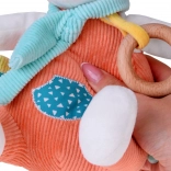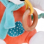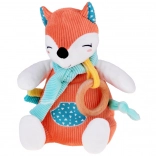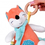 Le renard est fabriqué dans des couleurs apaisantes, combinant orange avec des détails blancs et turquoise, ce qui contribue à la stimulation visuelle de bébé.