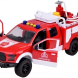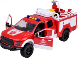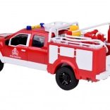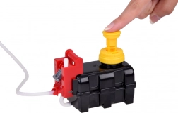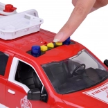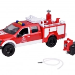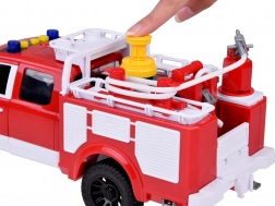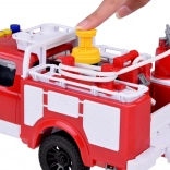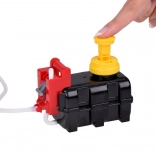 Grâce au tuyau en caoutchouc pouvant être connecté au réservoir d'eau du véhicule, les enfants peuvent profiter de l'extinction réaliste des incendies.