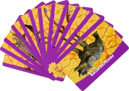 L'ensemble contient 12 cartes qui présentent différentes espèces de dinosaures et fournissent des informations éducatives.