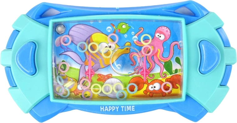 Ce jeu aquatique a la forme d'une console avec des teintes bleues et des graphismes du monde sous-marin à l'intérieur. Les images incluent une pieuvre, un homard et un poisson, créant une expérience visuelle attrayante.