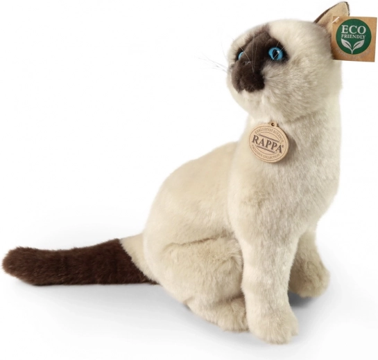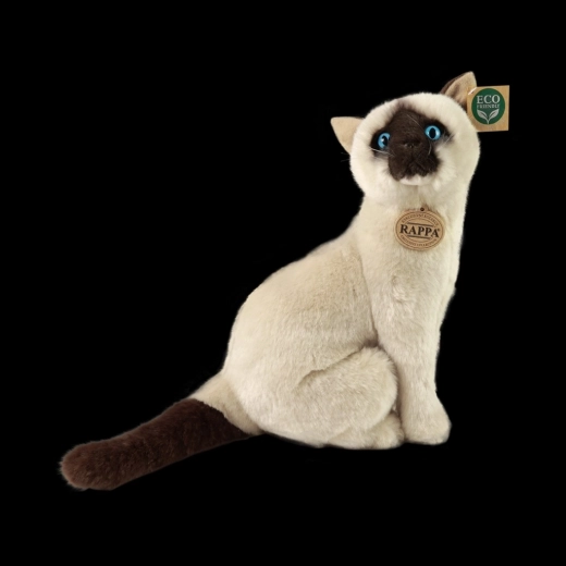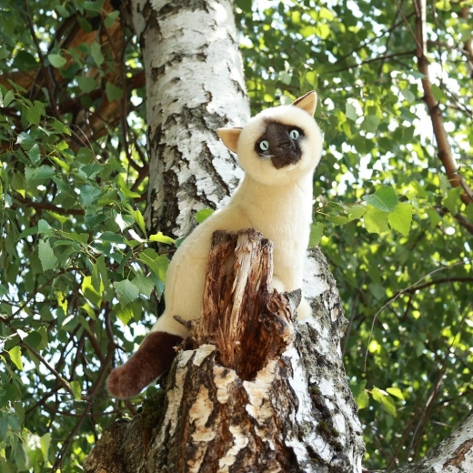 Adorable chat siamois en peluche de 30 cm qui ravira enfants et collectionneurs. Cousu à la main dans une peluche douce de haute qualité, il paraît presque vivant. Grâce au rembourrage écoresponsable issu de bouteilles PET recyclées, il est aussi respectueux de la nature. Il se distingue par son apparence réaliste, son travail soigné et sa douceur au toucher.