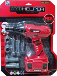 Ce set contient une perceuse à batterie réaliste, qui non seulement ressemble à une vraie, mais tourne et émet également des sons de perçage authentiques lorsque l'on appuie sur le bouton. Il comprend des forets et des vis interchangeables, rendant le jeu plus réaliste.