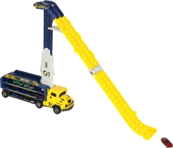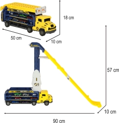 D’un simple déploiement, le camion se transforme en une piste à deux voies pour des duels de petites voitures – idéal pour un jeu rapide et créatif.