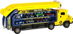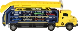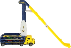 Ce transporteur de voitures multifonction se transforme en un clin d’œil en une impressionnante piste de course à deux voies. Les enfants peuvent transporter jusqu’à six petites voitures puis les lancer sur des voies parallèles pour des courses palpitantes. La combinaison jaune–bleu attrayante invite au jeu et favorise la motricité fine ainsi que la coordination œil–main.