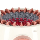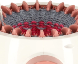 Grâce à ses 22 aiguilles, la machine gère les tricots circulaires et plats. Ses dimensions compactes 20 × 17 cm et son diamètre intérieur de 12,5 cm conviennent parfaitement aux projets rapides comme bonnets, chauffe-poignets, écharpes ou accessoires pour enfants. Le coffret comprend aussi 2 pelotes, une aiguille et un crochet pour des finitions faciles.