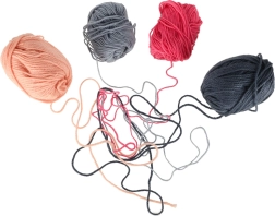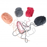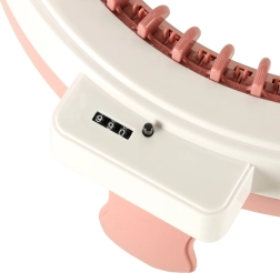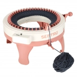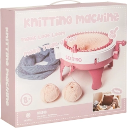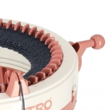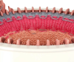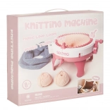 Le kit comprend 4 pelotes de fil colorées (gris foncé, gris clair, rose, beige), des aiguilles de différentes tailles et un crochet pour des finitions et des coutures aisées. Des pieds stables et des ventouses aident à maintenir la machine bien en place pendant l’utilisation.