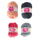 Le coffret contient 4 pelotes de fil, un set d’aiguilles et un crochet pour des finitions et des assemblages faciles.