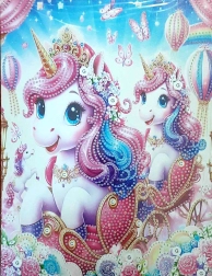 Peinture diamant sur toile – licornes en carrosse 23 × 30 cm