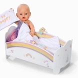 Offrez à votre poupée un cocon douillet avec le charmant lit arc‑en‑ciel BABY born. Le lit présente de délicats motifs pastel d’arcs‑en‑ciel et de nuages, un matelas confortable et un oreiller ainsi qu’une couverture réversibles pour encore plus de douceur.