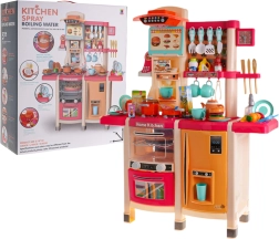 Elle comprend un four ouvrant avec lumière et son, un réfrigérateur avec imitation de distributeur d’eau, un lave-vaisselle, une cafetière intégrée, un panneau avec ventilateur et effets, ainsi qu’un téléphone avec fonctions lumineuses et sonores. Le riche assortiment inclut de la vaisselle, des aliments à scratch, des cartes de recettes et d’autres accessoires pour des heures de jeu.