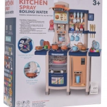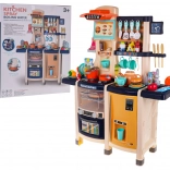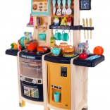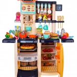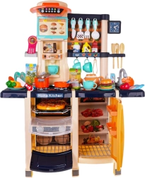 Cette cuisine interactive transforme la chambre en petit studio culinaire. En tournant les boutons, les brûleurs rétroéclairés s’allument et les sons de friture et de cuisson se déclenchent. De l’authentique robinet fonctionnel coule de l’eau, afin que les enfants puissent « laver la vaisselle » comme dans une vraie cuisine. Elle comprend également un four ouvrant avec lumière et son, un réfrigérateur avec imitation de distributeur d’eau, un lave-vaisselle et une machine à café.