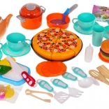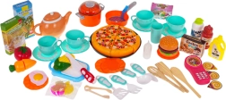 - Capsules pour machine à café, petites bouteilles (ketchup, lait, huile), boîtes d’aliments, pizza (6 parts à scratch), légumes et autres aliments, plateau de grill, pipette à eau, autocollants décoratifs