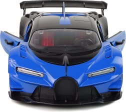 Voiture RC sportive avec carrosserie aérodynamique dans une combinaison bleu-noir attrayante, prête à rouler immédiatement après déballage. Grâce aux phares LED avant, elle offre un look réaliste qui ravira autant les enfants que les collectionneurs passionnés.