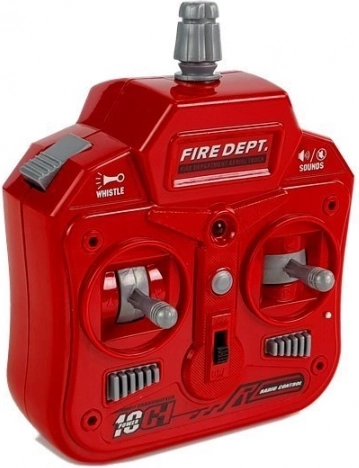 .- Un super avantage : l’échelle télescopique se déploie et se rétracte librement. Elle se contrôle par des boutons dédiés sur la télécommande située à l’arrière. Elle peut aussi pivoter autour de son axe. Votre petit pompier peut ainsi éteindre le feu des deux côtés.