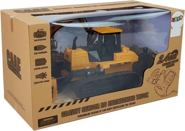 bulldozer RC à chenilles contrôlé par gestes de la main 2,4 GHz 1:28