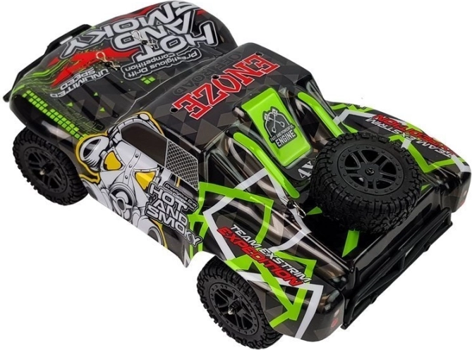 Voiture RC tout-terrain rapide à l’échelle 1:18 avec transmission intégrale 4x4, vitesse jusqu’à 40 km/h et suspension indépendante pour une conduite fluide hors route. La radiocommande 2,4 GHz ergonomique assure un pilotage précis jusqu’à 50 m. Construction robuste et grande batterie Li‑ion 7,4 V 850 mAh pour s’amuser sur toutes les surfaces.