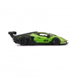 La combinaison de vert vif, le grand aileron et les détails sportifs reflètent fidèlement le caractère de la Lamborghini Essenza SCV12.