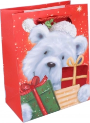 Sac cadeau de Noël élégant, taille S, dimensions 18 × 23 × 10 cm, idéal pour les petits cadeaux. Proposé en 4 variantes festives avec une conception solide pour une remise sûre et élégante des présents.