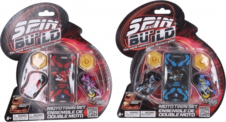 Les motos Spin and Build offrent des heures infinies de plaisir grâce à leur compatibilité avec les pistes de lancement W037925, W037924 et W037923. La taille des motos est de 4,5 cm et elles sont disponibles en plusieurs variantes.