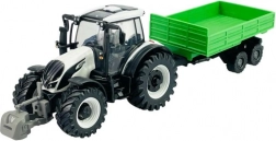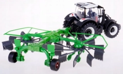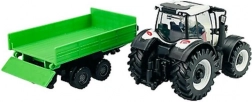 Ce modèle de qualité associe une carrosserie métallique à des accessoires plastiques précis pour un rendu authentique. Grâce aux grandes roues, à la cabine et aux éléments réalistes, il ressemble à une véritable machine, tandis que la remorque verte basculante élargit les possibilités de jeu comme d’exposition en vitrine.