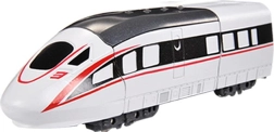 Robot métallique transformable en train à grande vitesse blanc