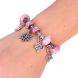 Un mix d’accents roses, argentés et dorés, des cordons cirés et des pendentifs de formes variées stimulent l’imagination et développent la motricité fine. Chaque bracelet sera unique.