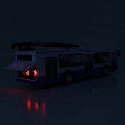 La prise en main est simple et ludique : ouvrez les portes manuellement, fermez-les en appuyant sur le bouton sur le toit et observez les phares avant clignotants lors de la fermeture. Le trolleybus avance grâce au mécanisme à rétrofriction, ce qui lui permet de se lancer facilement sur le sol. Les piles LR44/AG13 sont déjà incluses, vous pouvez jouer dès le déballage.