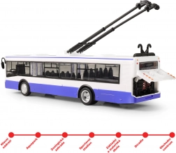 Découvrez le plaisir des transports urbains avec ce trolleybus bleu qui parle tchèque et diffuse des annonces d’arrêts à l’ouverture des portes. Des détails réalistes à l’échelle 1:43 et une longueur de 28 cm en font à la fois un superbe modèle et un jouet robuste pour jouer au quotidien.