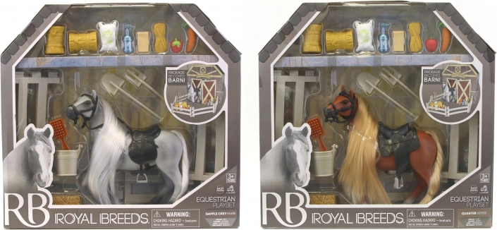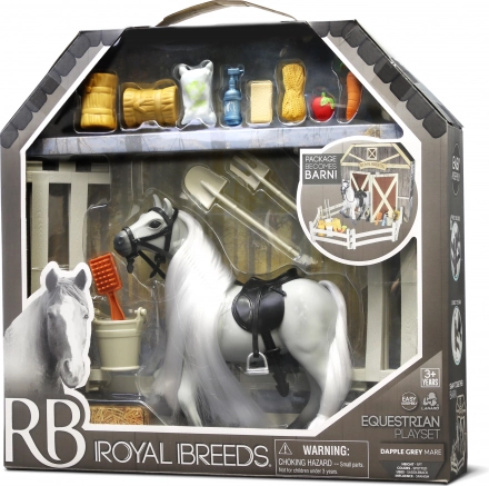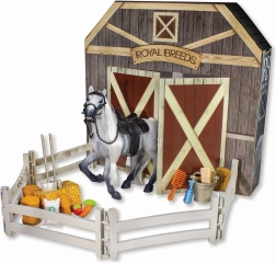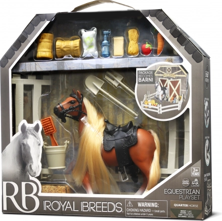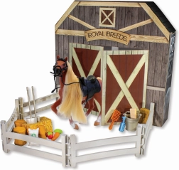 Ce kit comprend un Cheval Royal Breeds de 17 cm avec des éléments interactifs qui captiveront tous les enfants. Le dos ouvrant de l'emballage élargit les possibilités de jeu et se transforme en écuries :