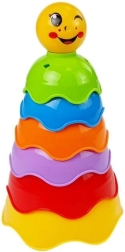 La pyramide de jeu aux couleurs de l’arc-en-ciel composée de gobelets empilables soutient le développement de l’enfant dès les premiers mois. Les gobelets en plastique de haute qualité et sûr ont des bords lisses et arrondis, et le plus petit gobelet au sommet affiche un visage joyeux. Le jouet développe la motricité fine, la coordination œil–main, la reconnaissance des couleurs et des formes ainsi que la pensée logique.