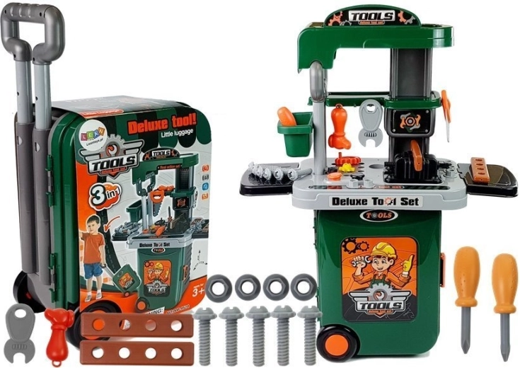 Si votre enfant aime aider papa à bricoler, ce set portable sera idéal pour lui. L’atelier en valise est un accessoire parfait qu’il peut désormais emporter partout. La poignée télescopique et les roulettes à l’arrière lui permettent de le tirer avec lui. À l’ouverture de la valise, toutes les pièces se trouvent à l’intérieur pour créer son propre atelier. Il ne prend pas beaucoup de place. Le plus grand avantage du set est le grand nombre d’éléments, grâce auxquels votre enfant pourra réparer de nombreux jouets en bricolant.