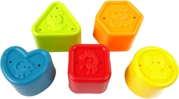 • Les enfants peuvent construire une haute tour à l’aide des gobelets et d’une tête d’ourson au sommet.