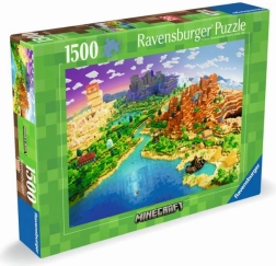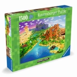 Profitez d'heures de détente avec les puzzles de qualité Ravensburger au motif Minecraft World. Le coffret contient 1500 pièces et l'image assemblée mesure 80 × 60 cm. Finition premium avec surface antireflet, technologie brevetée SoftClick et résistance au pliage pour un assemblage précis et une image nette.