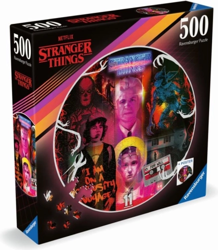 Puzzle circulaire Stranger Things de Ravensburger, 500 pièces, forme unique et finition de précision.