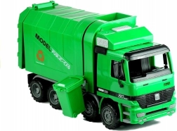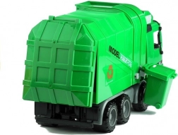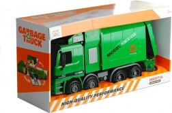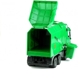 Ce grand camion poubelle vert ravira tous les enfants qui aiment les engins de chantier et le jeu réaliste. Grâce à la porte arrière ouvrante et au mécanisme intelligent de basculement, vous collectez facilement les déchets et les videz dans la benne. La cabine ouverte peut accueillir une figurine de conducteur et un passager, le volant tourne et les rétroviseurs rabattables renforcent l’authenticité du jeu. Les roues profilées s’adaptent à différents terrains et le mouvement à inertie assure la conduite d’une simple poussette.