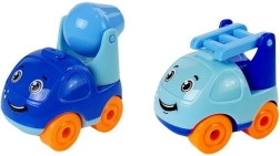 Le coffret comprend également 2 petites voitures en plastique aux expressions mignonnes – un camion toupie et un camion de pompiers avec échelle – ainsi qu’un ensemble d’accessoires pour construire une petite « station-service » à la maison. Les enfants composent facilement leurs propres scènes avec un feu tricolore, des panneaux et des barrières.